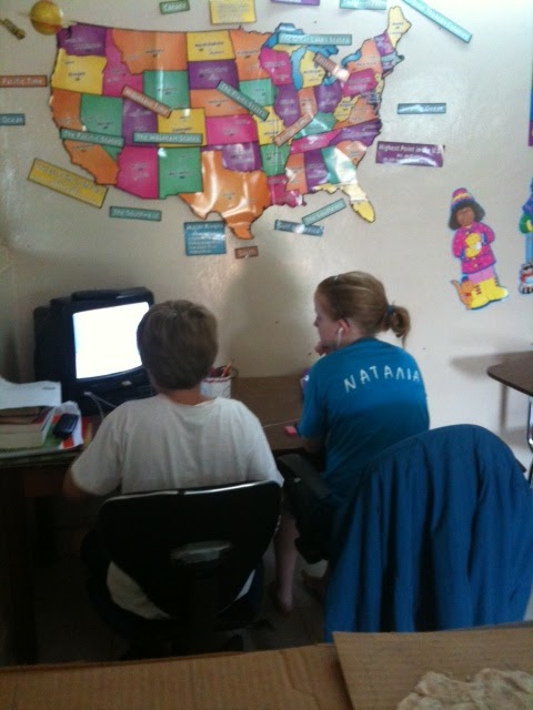 As you can see from the pictures, much of their education also depends on technology. Much of the A Beka material includes classroom lectures on DVD. So they have the same teacher and the same fellow-students every day in those classes. Then, of course, the online classes are internet dependent.